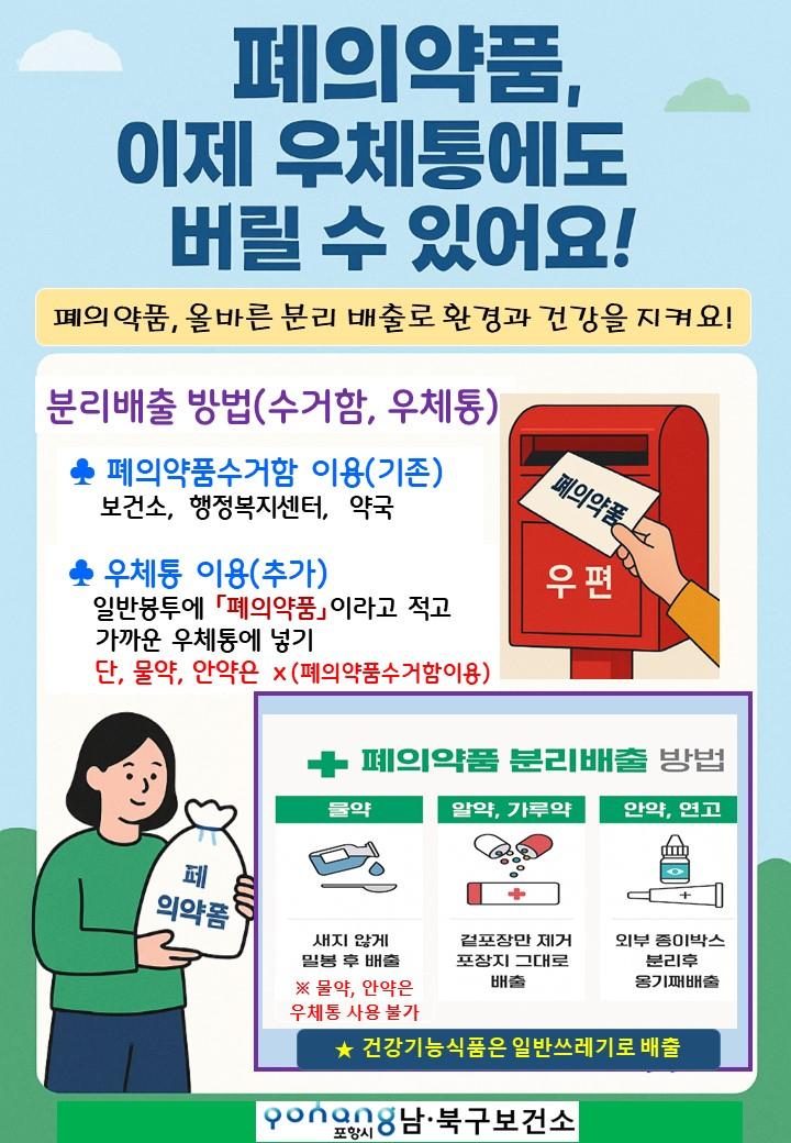 💊 알약 / 가루약 우체통 또는 수거함 봉투 겉면에 ‘폐의약품’ 표시 필수
