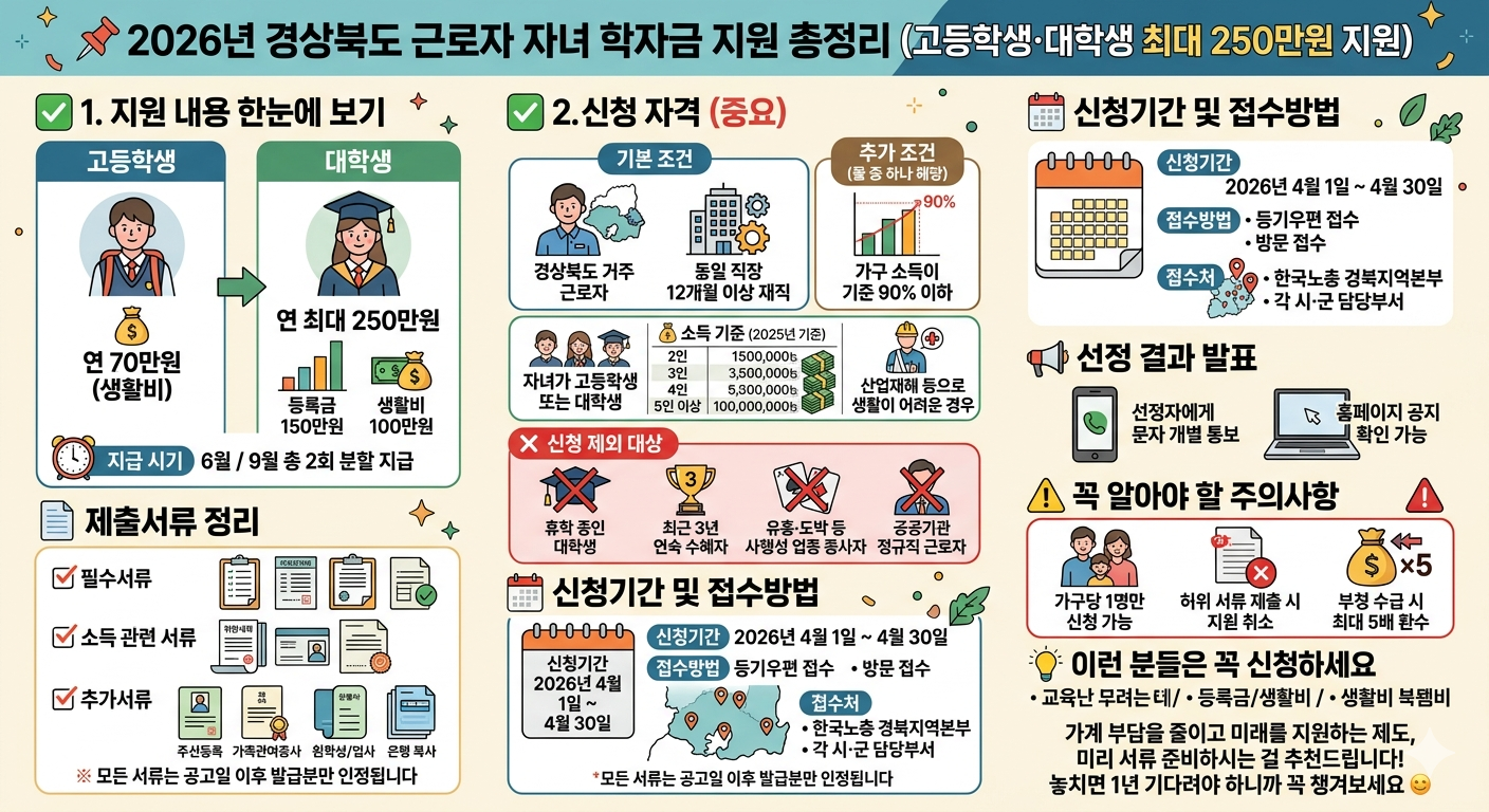 2026년 경상북도 근로자 자녀 학자금 지원 총정리