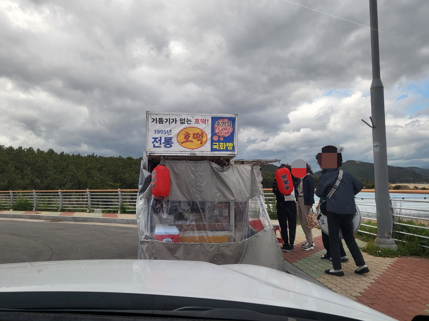 차로 신항만 동해 바닷가를 따라 쭈~욱 이동했는데 또다른 호떡 트럭을 발견했어요 이집 호떡은 기름이 없는 호떡이네요