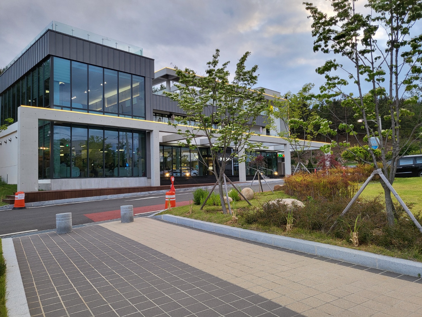 산밑에 아주 넓은 부지에 아주 넓게 위치해 있는 포항농협로컬직매장카폐입니다.