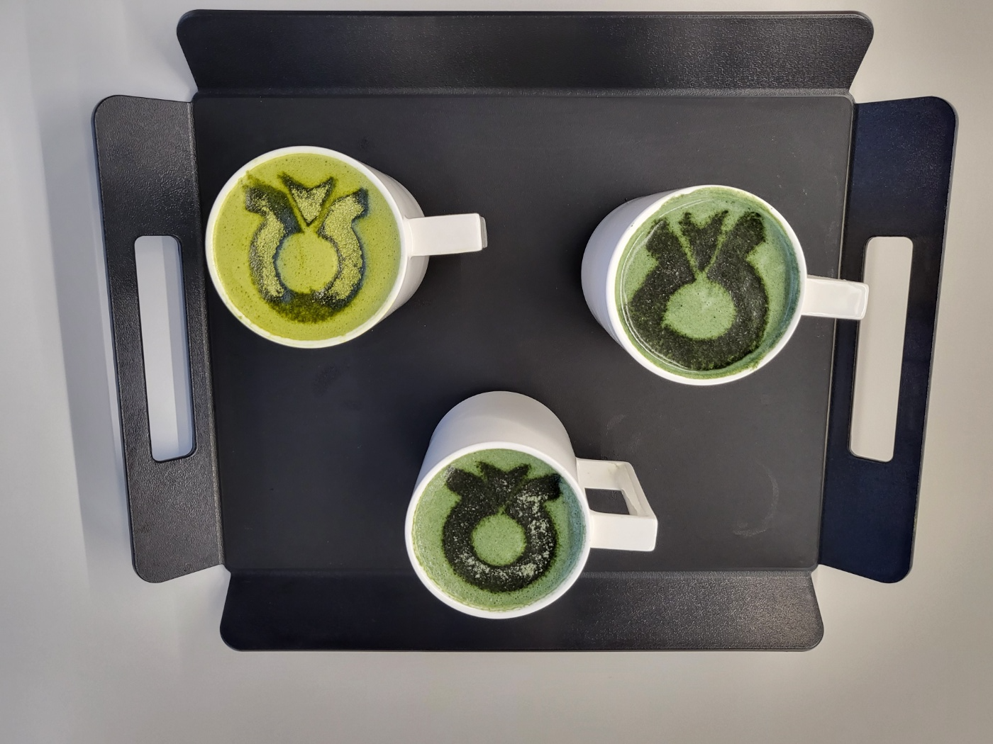 사진의 찐한 초록색 차는 쑥라떼이고 연두색 차는 말차 라떼랍니다.